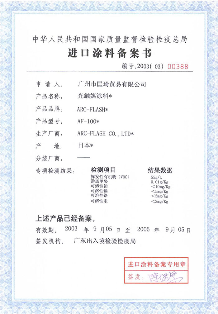 服務(wù)項(xiàng)目公司于2003年與日本AFC-furte光觸媒取得中、港、澳總代理權(quán),并成功開(kāi)發(fā)國(guó)內(nèi)光觸媒市場(chǎng),成為國(guó)內(nèi)第一家以光觸媒產(chǎn)品治理環(huán)境的企業(yè)。